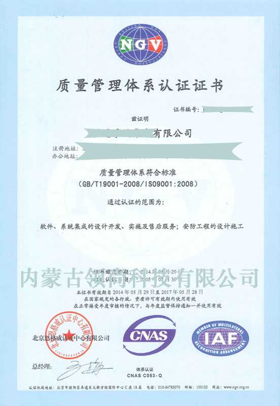 ISO9001質(zhì)量管理體系認(rèn)證證書(shū)